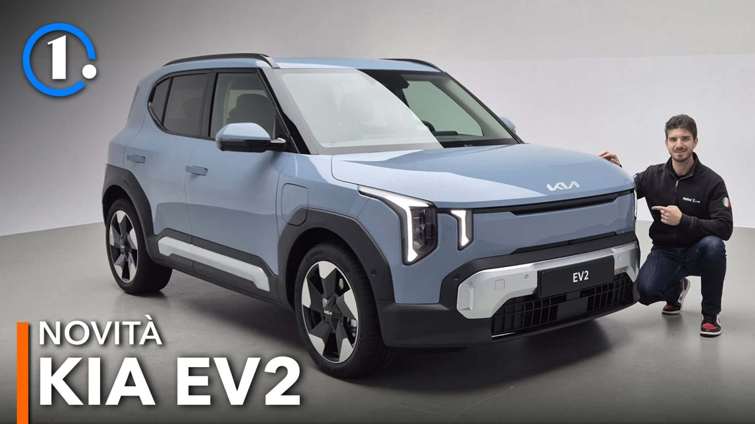 Esthétiquement, la EV2 reprend la philosophie « Opposites United » de Kia : surfaces anguleuses combinées à volumes plus doux. Le parti pris donne un petit crossover à l’allure moderne, avec un avant minimaliste et des optiques verticales rappelant l’identité EV de la marque. La calandre est réduite — logique pour une électrique — et les jantes vont de 16″ à 19″ selon les finitions. Le pare‑chocs et la face arrière très compacte accentuent l’impression de robustesse urbaine.