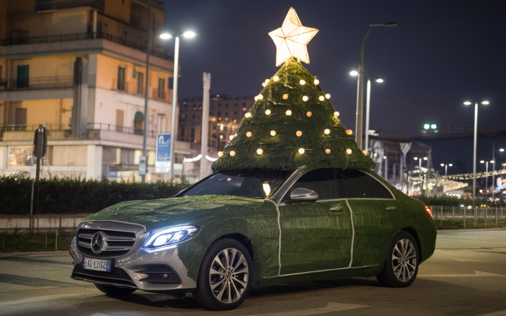 Les fêtes de fin d’année donnent parfois des idées créatives… et risquées. À Bari, plusieurs conducteurs ont décoré leur voiture avec des guirlandes lumineuses, des installations lumineuses et autres ornements festifs — un geste festif qui a rapidement tourné au cauchemar juridique pour certains. Une Mercedes GLC entièrement recouverte de lumières a été interceptée par la police, verbalisée et interdite de circulation jusqu’au rétablissement des conditions d’origine du véhicule.